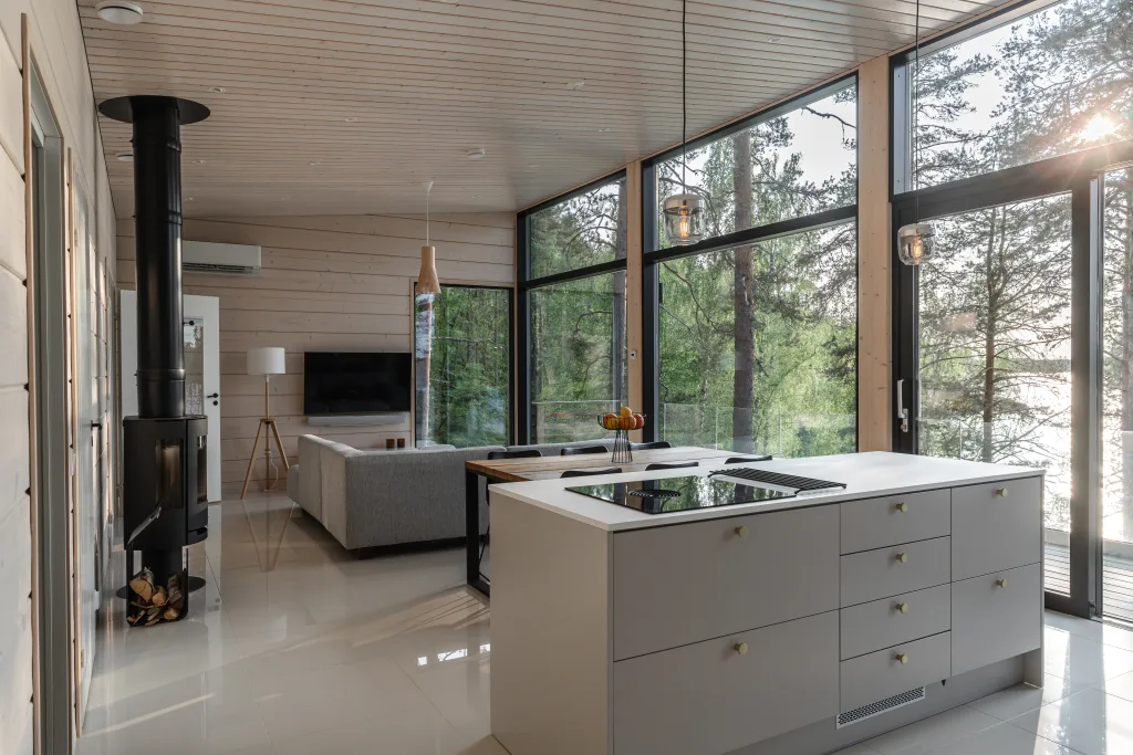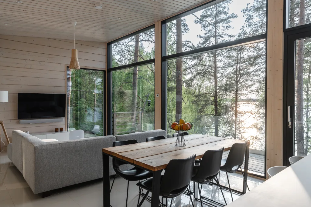 Ikkunaseinä, joka tekee maisemasta osan kotia